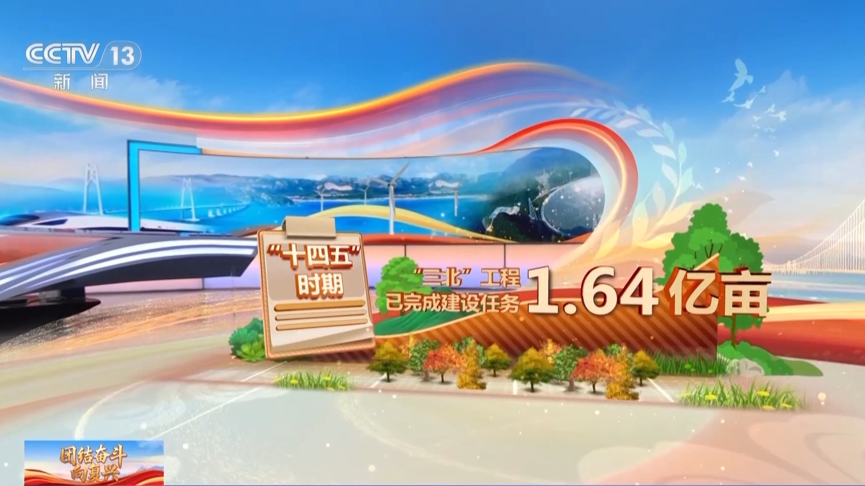 “三北”工程攻坚战三大标志性战役全面打响,已完成建设任务1.64亿亩,黄河“几字弯”绿进沙退。